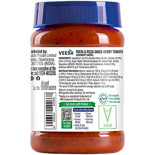 VEEBA PASTA&PIZZA SAUCE 280GM